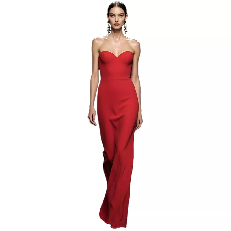 Red Strapless Long Dress Style a a