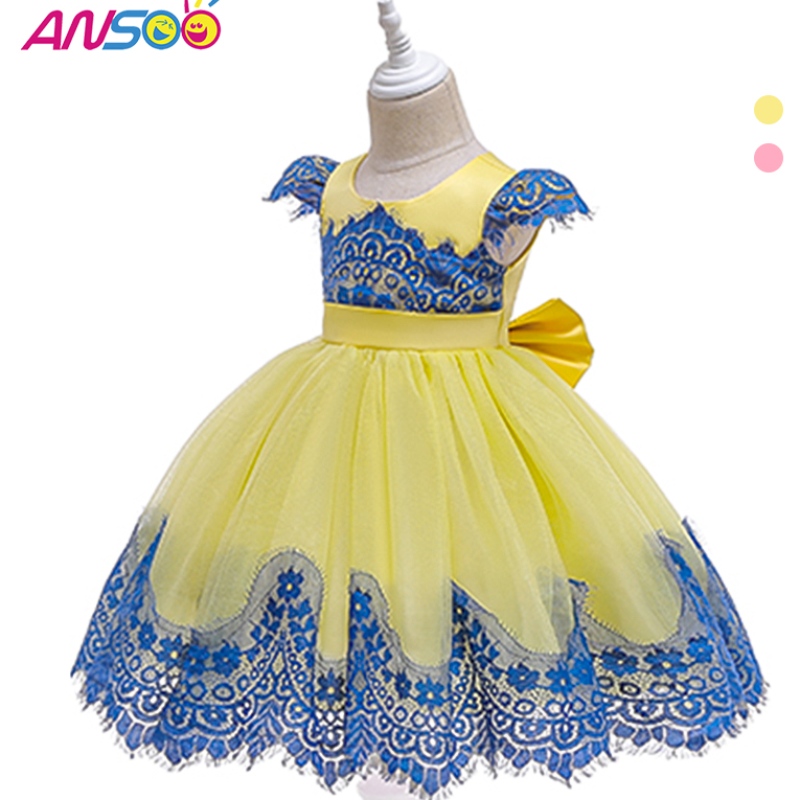 Baigenieuwe kinderen jurken feest slijtage mouwen mouwen kinderen verjaardagsvoorziening jurk l0816