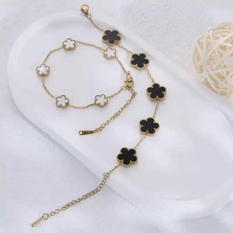 Titaniumstaal vijf-blad bloem armband